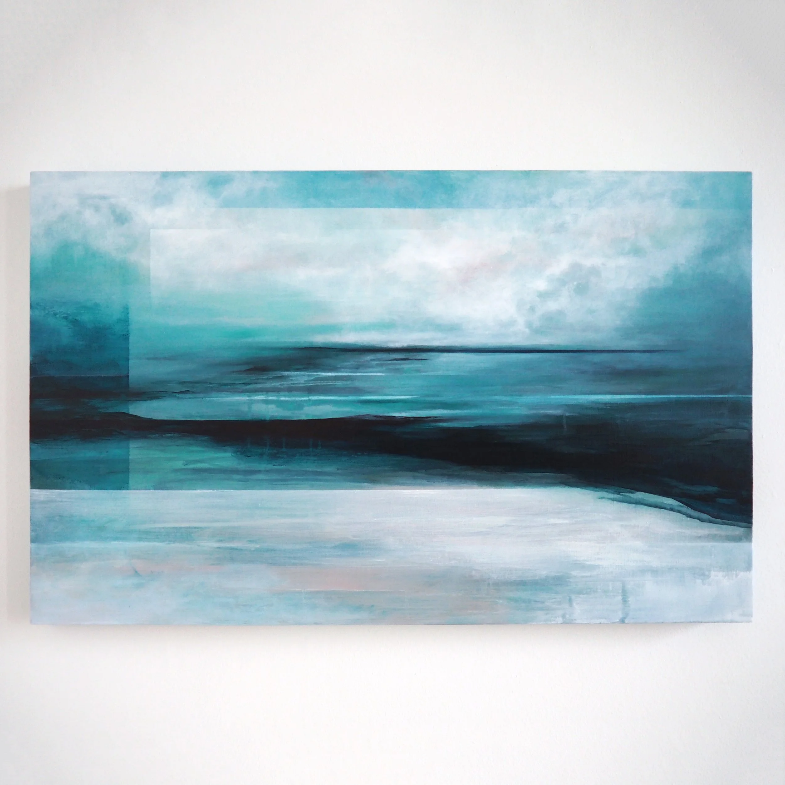 “The light is constantly shifting and, therefore, altering the scene. The constraint of a camera’s lens or artist’s panel creates boundaries that do not exist if stood within real-time and space. My current practice explores how to recreate the Scottish landscape within the limitations of this knowledge. By layering the image, I create depth that enables the viewer to be absorbed through focussed segments of interest, along with more peripheral, hazy areas. I am often drawn to the edge of the land through my love of outdoor swimming.