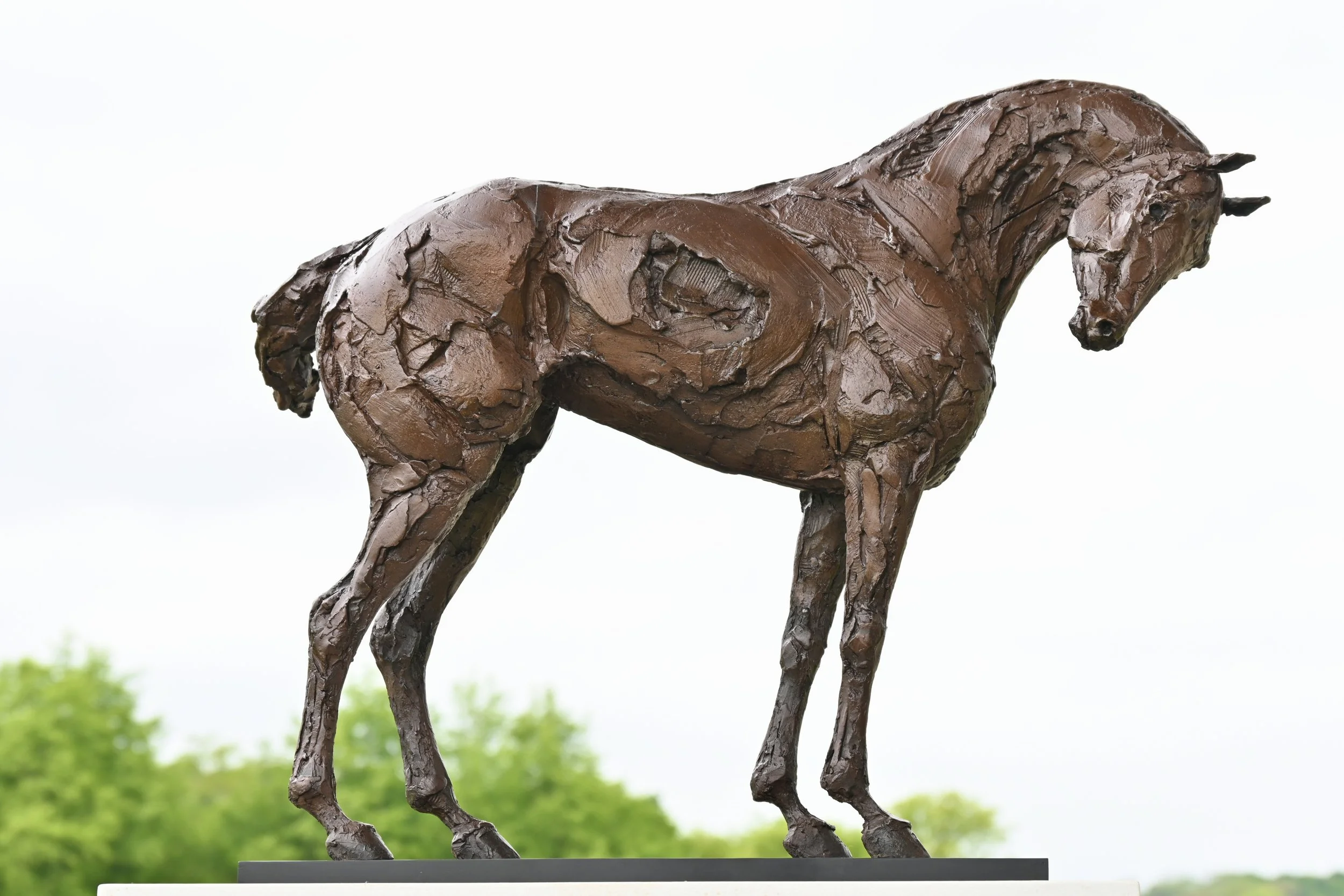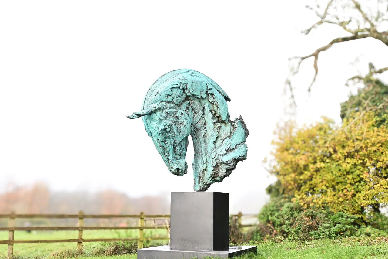 The sculptures of Holly Hickmore combine the classic and the contemporary, the rigours of skillfully depicting the tension of a muscle and the strain of a sinew with the freedom of allowing the subject to guide the hand of the artist. Indeed, Holly's subjects are at once familiar, and as with her horses extensively depicted throughout history, yet they also possess a distinctive character that allows us to see them anew.Her equine busts in particular, ranging from life-size to monumental depictions, appear almost as if they have been sketched in the air with each line and stroke overlapping, layering and weaving together to create forms that pulse with an underlying energy and vigour. Yet this energy is delicately contained and framed by a sense of grace and knowing, as if artist and subject are equally balanced, steadying the hand and the gaze of one another.